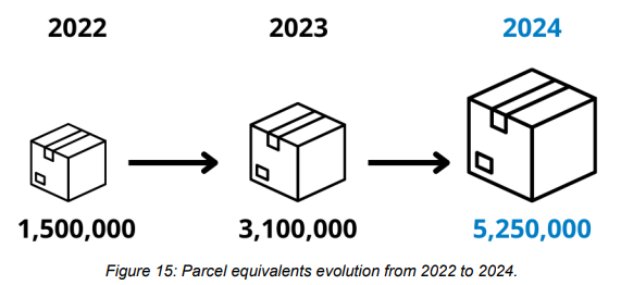 • plus de 5 millions de colis livrés à vélo en Belgique, soit 70 % de plus qu’en 2023 ;